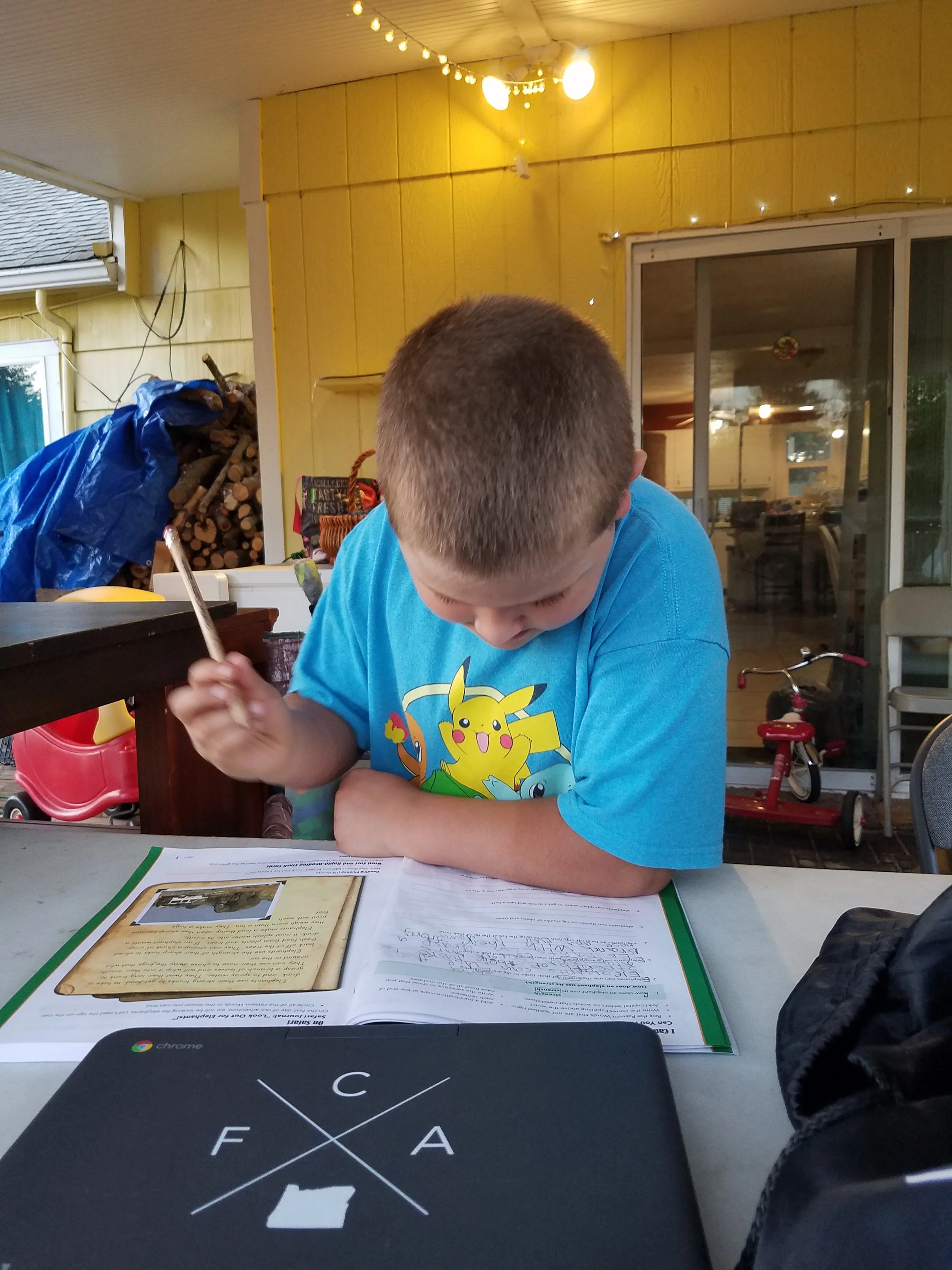 “My child had really unsafe behaviors at his previous, in-person school. These behaviors prevented him from actually participating to show his full potential. By joining the FCA family we’ve given our son the tools he needs to be successful. The live teaching segments allow him to feel involved but because he isn’t in a room with other children, he doesn’t feel the need to be the center of attention. His teacher took the time to meet with us before he started (since he started near the end of the year) to get a feel for what we thought he needed and what would work for him. The schedule is extremely flexible since live classes are also recorded. I was amazed at all the tools and resources sent to our home for him to utilize. The thought of basically ‘homeschooling’ my child was very overwhelming but I quickly realized that he was, in fact, getting a normal school experience just in a more comfortable environment. Since we joined late in the year we weren’t able to make it to any Frontier Days but I love that once a month everyone who can, gets together as a school! I highly recommend this program for any family!”